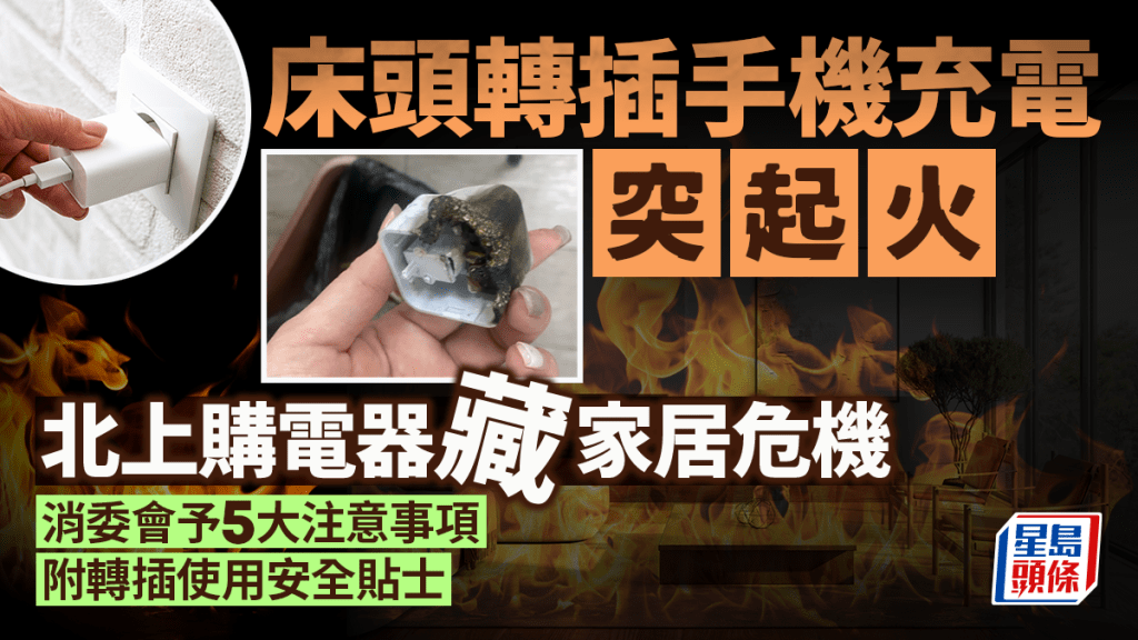 相關文章:床頭轉插手機充電突起火 北上購電器藏家居危機 消委會予5大注意事項 附轉插使用安全貼士