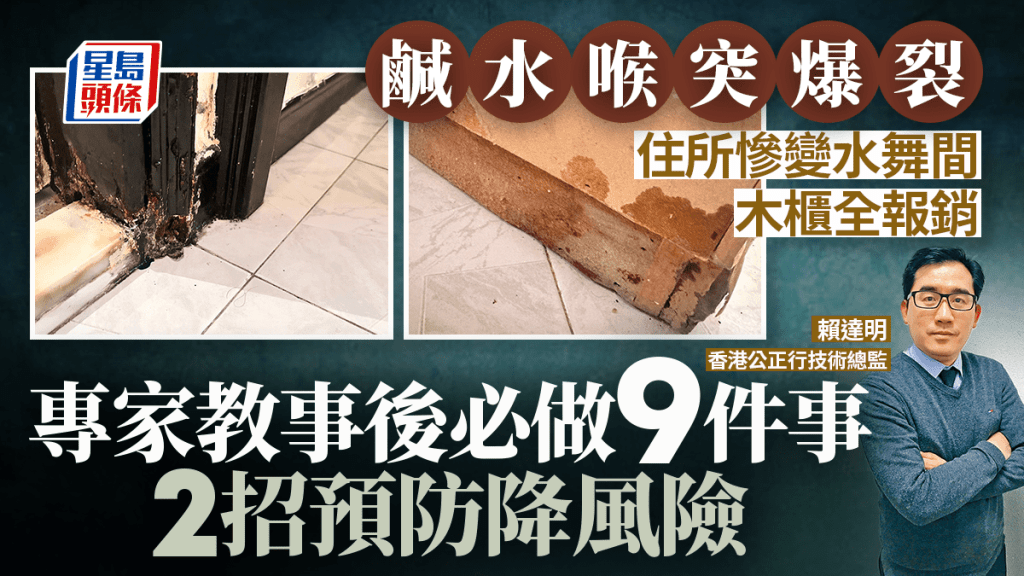 他又指,公正行目前積極跟進,工程師亦會上門檢驗並出具正式損毀報告,經歷今場噩夢後,直言上了寶貴一課,「日後若再置業,必定首選樓齡較新、並由具規模管理公司負責的屋苑,以免重蹈覆轍。」