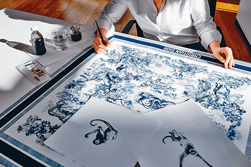 Dior秋冬成衣系列中,絲巾擔當 重要的角色,在不同造型上以亮眼的配搭登場,務求將這配飾的可塑性發揮極致。秋冬新作以各式圖騰配搭多變顏色,並運用人手繪製及印刷技術,為化身畫布的絲巾,添上藝術色彩。