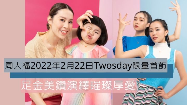 周大福為為迎接百年一遇的 2022 年 2 月 22 日(星期二)特別日子,炮製全新的「Twosday」限量首飾新品,邀來李元元(Lucy)及其媽媽梁志瑩(Sophia)、《造星4》陳昭煊(超酸)及葛綽瑤(Yoyo) ,以及曾是毛記電視旗下藝員的李星熲(Cherry)及王啟豪(Kyle)演繹釋出親情、友情及愛情的親密關係,展現璀璨的愛。