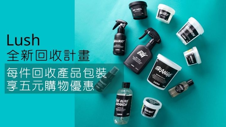 Lush推出全新Bring it Back 產品包裝回收計劃,顧客可以攜同已潔淨並合資格的品牌產品包裝到專門店進⾏回收,當日顧客可於選購正價產品時,憑每件合資格的產品包裝獲得$5回收獎勵。