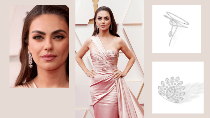 Messika:作為頒奬嘉賓的女星Mila Kunis以粉紅色晚裝長裙,佩戴品牌7.88Catcher High Jewelry鑽石耳環、6.24Twisted Wave鑽石手鐲及2.9Desert Bloom鑲鑽指環,豐富造型,亦帶來搶眼焦點。