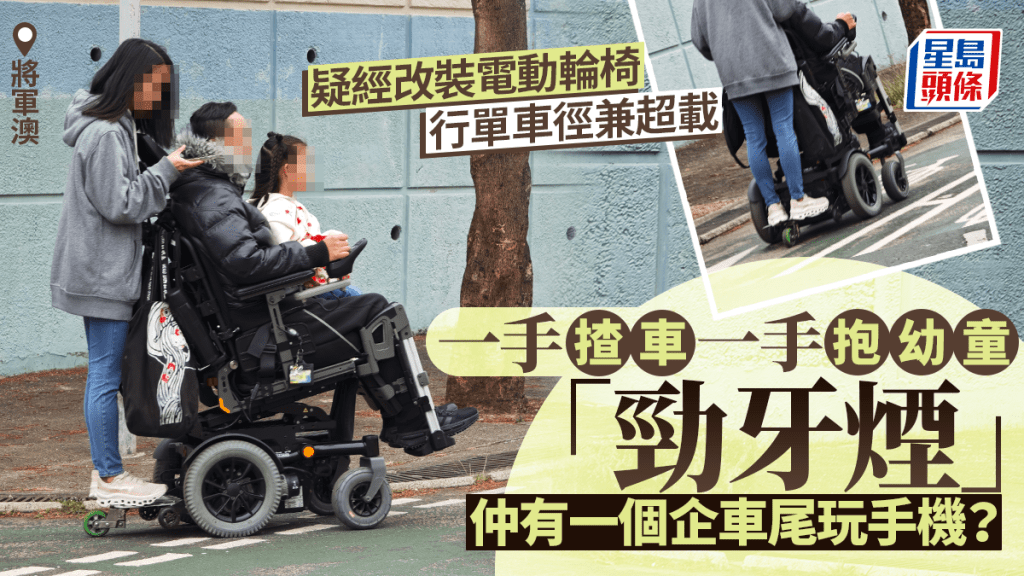 電動輪椅單車徑行駛兼超載 邊揸車邊手抱幼童「勁牙煙」 仲有一個企車尾?運輸署咁回應...