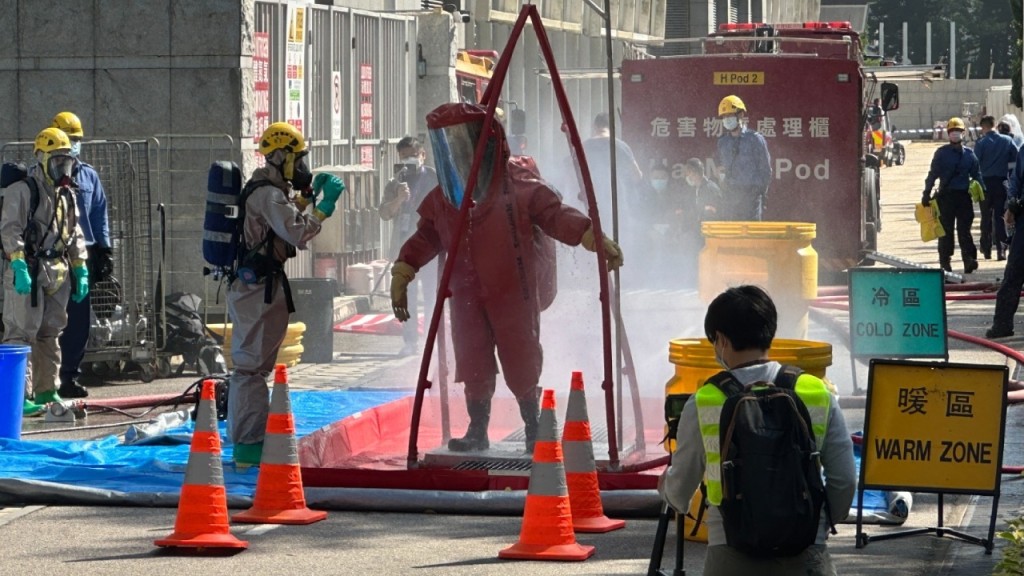 大埔科學園洩漏化學品演習 消防警方動員逾百人參與行動