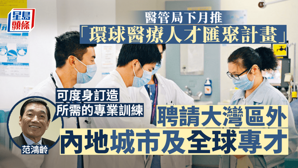 醫管局早前派員到英國招募醫生,范鴻齡指發出了139封有條件聘書,當中32人已簽約,期望在今年第三季抵港,下個月會帶隊到澳洲繼續招攬人才,未來亦會繼續到英聯邦國家招聘。醫管局計畫在現行「大灣區醫療人才交流計畫」以外,下月推出「環球醫療人才匯聚計畫」,吸引年輕專才到港服務1至2年。