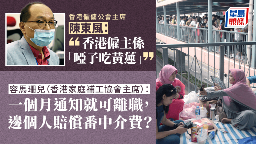 陳東風又指,壓力其實是在印尼的中介公司,他坦言只得一個結果,「一係就整,一係就佢唔介紹工人俾你」。他指港府一向給人的印象是關心傭工權益、要求減低傭工負擔等,形容現時印尼一方提出要轉嫁費用至香港僱主是「啞子吃黃蓮」。