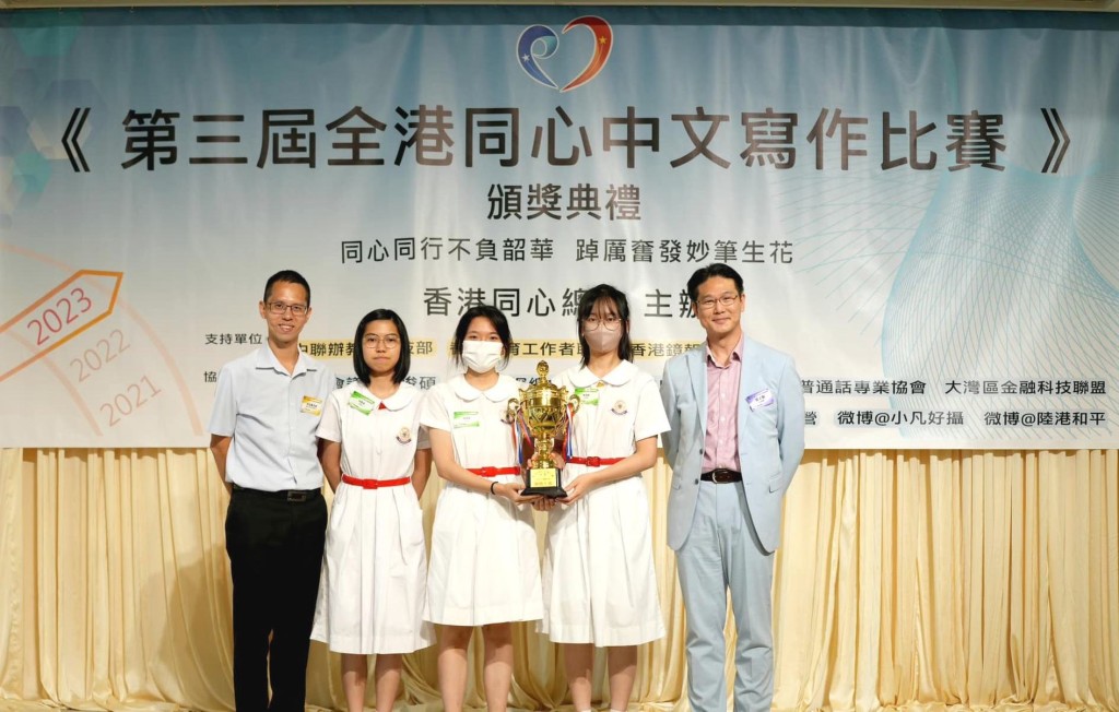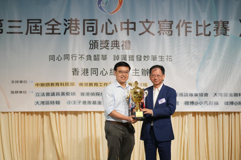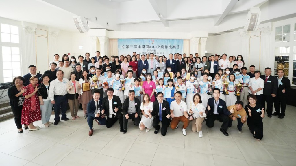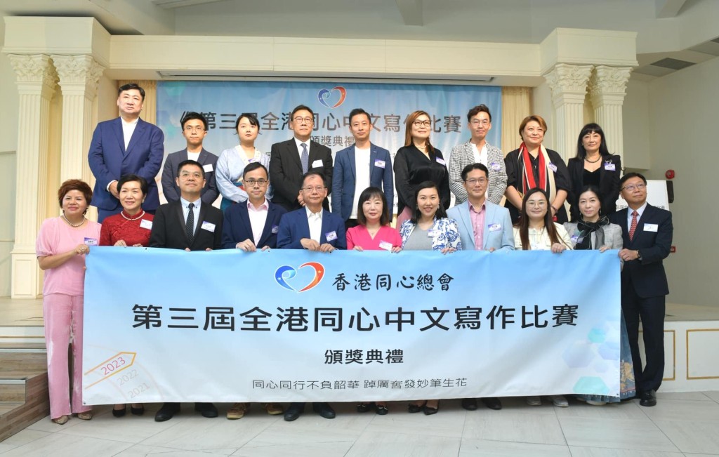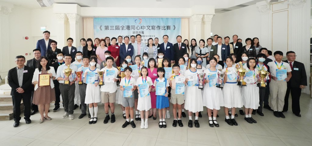 香港同心總會主辦的《第三屆全港同心中文寫作比賽》頒獎典禮已隆重舉行,比賽主題「同心同行不負韶華 踔厲奮發妙筆生花」。主辦方收到了來自100多間學校,其中包括多間大專院校學生的投稿,比賽評出了小學組冠軍候依諾、初中組冠軍申奧瑩,高中組冠軍張量淇,公開組冠軍李毅衡,網上最受歡迎獎潘欣悅,獲獎學生共80人,獲團體奬學校14間,其中北角蘇浙公學、仁濟醫院陳楚思中學、東華三院甲寅年總理中學分別贏得團體大奬。