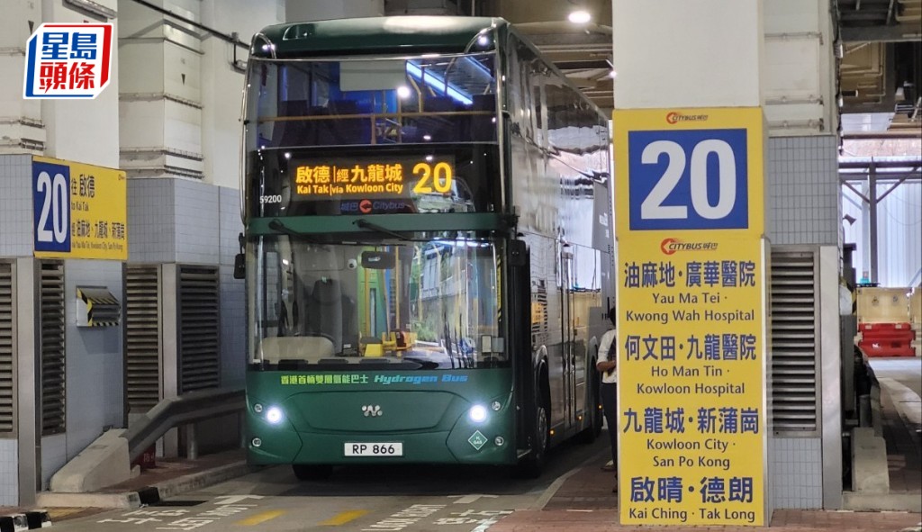 城巴全港首輛雙層氫氣巴士準備投入服務,城巴營運及工程總監馮家輝公布,氫巴將行駛20號窩打老道線,首班氫巴將於後日(25日)上午11時正,由啟德(沐安街)開往長沙灣(海達)。記者試坐約時,聽不到引擎雜聲,但冷氣聲仍然比較大;乘車體驗上,氫巴起步加速較柴油巴士絲滑,整體感覺良好。
