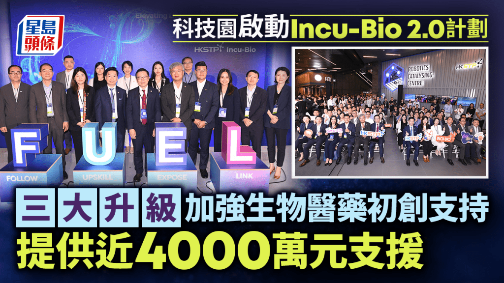 粘提及,「Incu-Bio」推出15年來,已培育超過100間生命健康科技公司,目前亦與安進、默克、羅氏、上海醫藥及勃林格殷風險基金等合作,作為共同孵化夥伴,為香港引入全球前沿和創新的資源和商業合作。他指出,科技園在「Incu-Bio1.0」計劃提供實驗室和高達600萬元融資,在「Incu-Bio2.0」則會加碼,為初創公司提供最高達3,970萬元的資金支援,並配合超過300名專家導師網絡輔助,相信相關「端到端的設計亦是亞洲獨創,不單是聚焦孵化階段,而是整個創業旅程都一直相伴」。