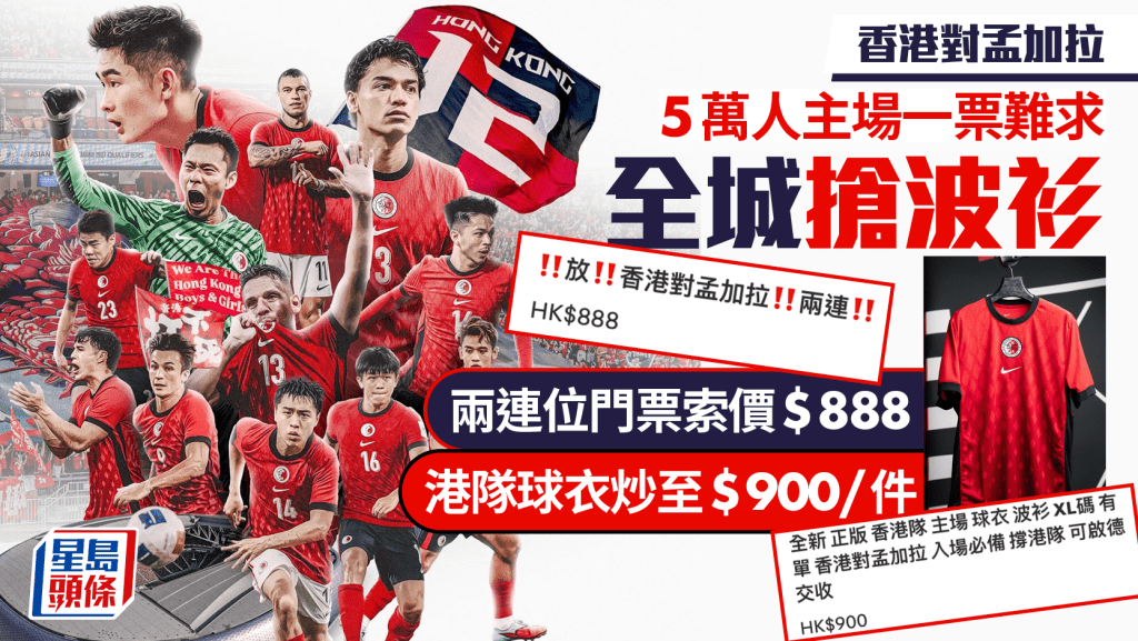 香港對孟加拉|5萬人勢坐爆啟德黃牛湧現 港隊波衫炒至$900/件 門票兩連位索價$888