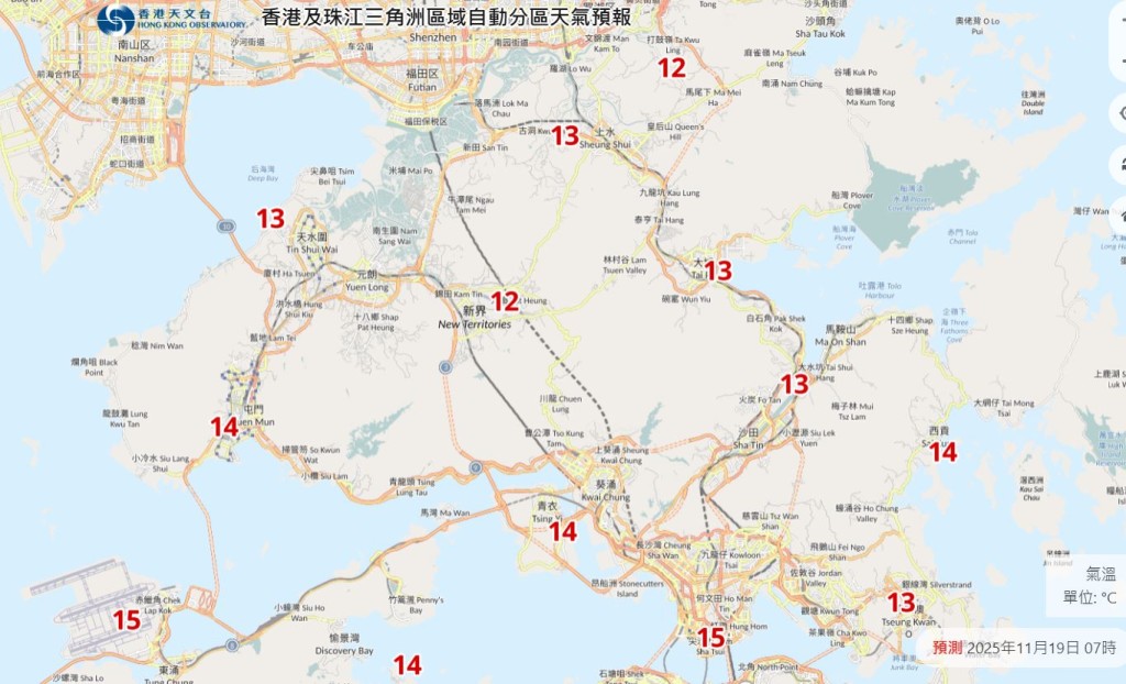 天氣︱強烈東北季候風下周初殺到!11.19市區氣溫跌至15度 打鼓嶺、石崗低見12度