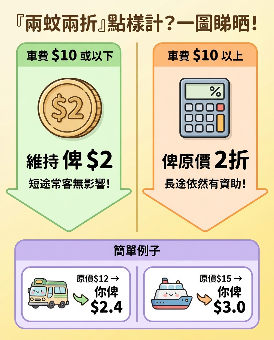 2元乘車優惠︱4.3起調整為「兩蚊兩折」票價高於$10變「兩折」政府:受惠對象不變