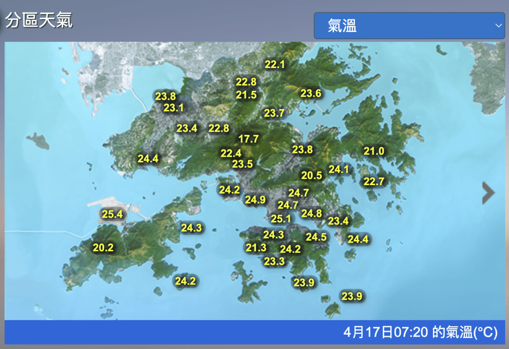 昨日下午本港體感炎熱,天文台尖沙咀總部錄得攝氏三十點二度高溫,打破三月二十五日的紀錄,創下今年以來的新高。新界多區氣溫更為酷熱,上水錄得全港最高三十一點二度,流浮山、打鼓嶺及大埔亦普遍錄得三十度以上。