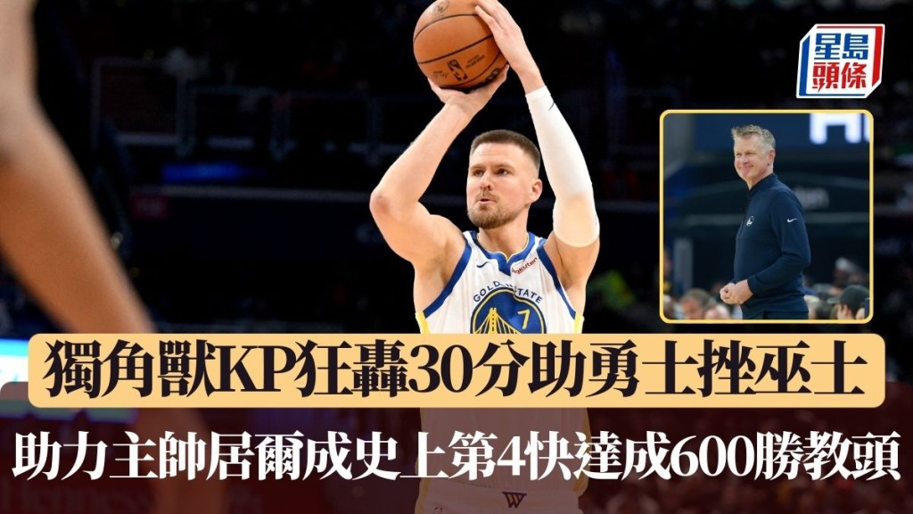 NBA|獨角獸KP狂轟30分助勇士挫巫師 助力主帥居爾成史上第4快達成600勝教頭