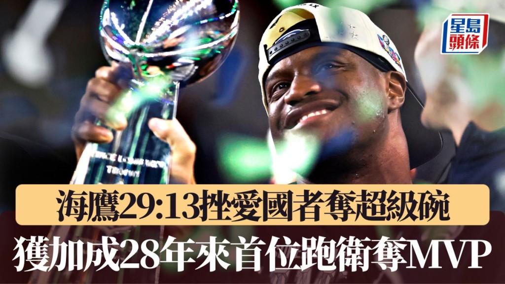 NFL|海鷹29:13挫愛國者奪超級碗 獲加成28年來首位跑衛奪MVP