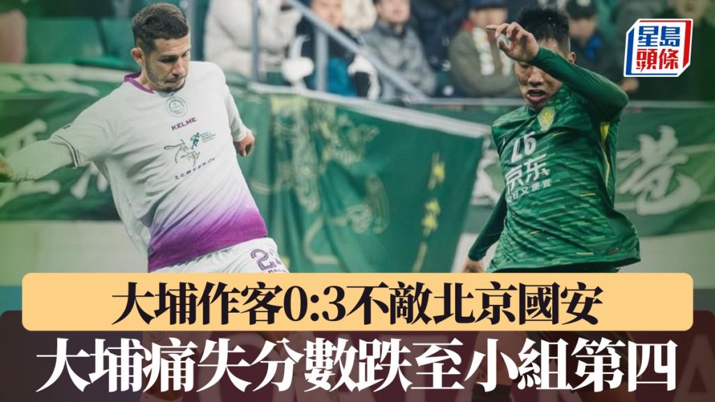 亞冠2|大埔作客0:3不敵北京國安 大埔痛失分數跌至小組第四