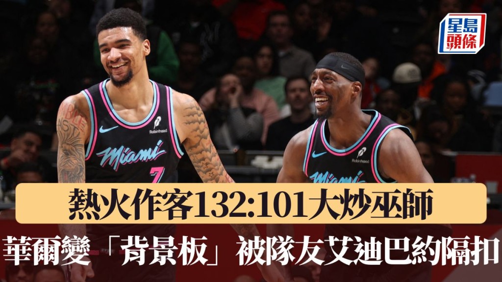 NBA|熱火作客132:101大炒巫師 華爾變「背景板」被隊友艾迪巴約隔扣(有片)