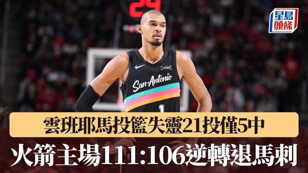 NBA|雲班耶馬投籃失靈21投僅5中 火箭主場111:106逆轉退馬刺