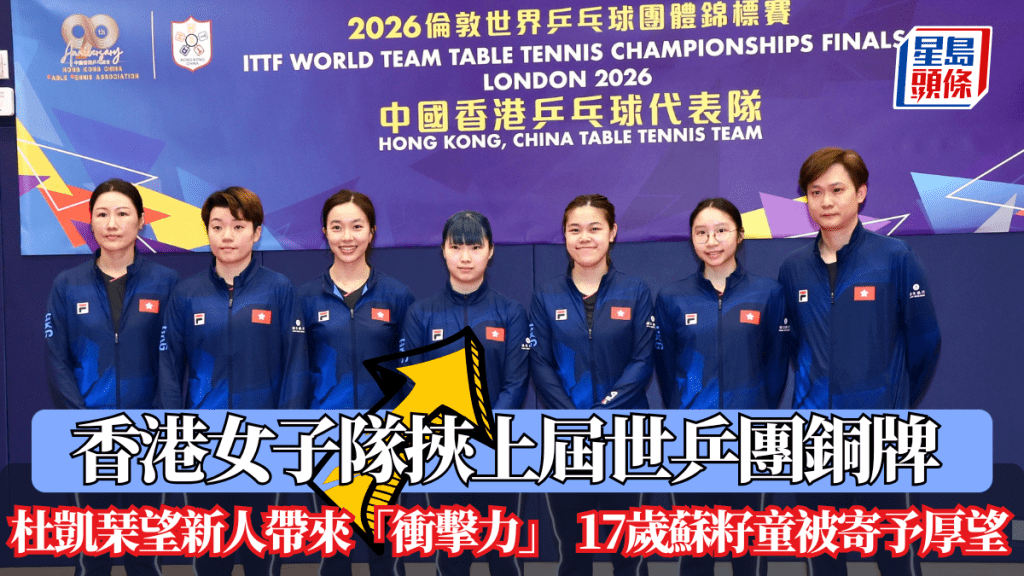 香港女子隊挾上屆世乒團銅牌 杜凱琹望新人帶來「衝擊力」 17歲蘇籽童被寄予厚望