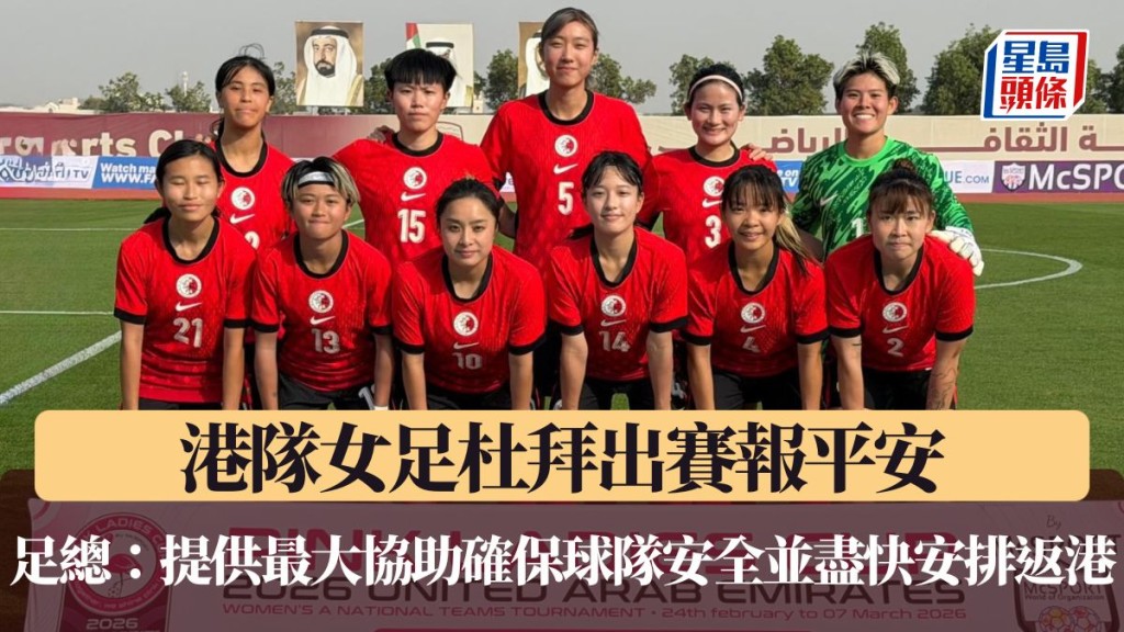 近日中東局勢持續緊張,而港隊女足正在阿聯酋杜拜參與Pink Ladies Cup 2026,引起球迷關注和憂心,足總今日發新聞稿指女足已在杜拜入住酒店,目前情況安全穩定,並以職員球員安全為首要考慮,並盡快安排返港事宜。 港女足杜拜報平安 足總指盡快安排返港事宜 港隊女足2月25日遠赴阿聯酋杜拜參與Pink Ladies Cup 2026,上周六已與加納交手,之後再鬥坦桑尼亞和俄羅斯,原定於3月6日