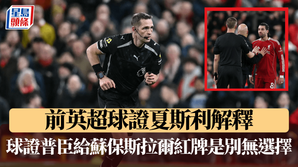 英超|前英超球證夏斯利解釋 球證普臣給蘇保斯拉爾紅牌是別無選擇