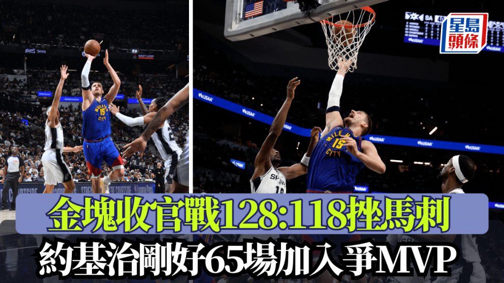 NBA|金塊收官戰128:118挫馬刺 約基治剛好65場加入爭MVP