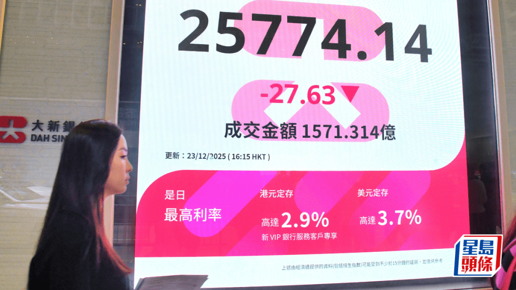 恒指收跌27點 騰訊跌2% 快手挫3.5% 分析:下周有望突破二萬六|港股收市