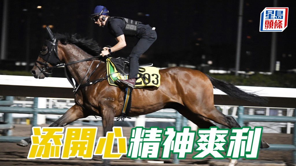 「健康之星」戴眼罩由鍾易禮跳兩段,滋油淡定走過,神態非差,保持身壯,狀態起落不大。「太陽拍檔」戴頭罩由助手拍「有鴻利」跳兩段,捉到實暗火展現,目光銳利有神,身壯實淨毛色烏卒卒,傷瘉操足再無大礙。「飛躍凱旋」戴眼罩由助手拍「新幹線」跳兩段,前駒拍住走鬥心不弱,走勢流暢,毛色油潤悅目。「妙玲瓏」戴眼罩及頭罩由巫偉傑跳兩段,試來精神奕奕,步挺身壯毛色潤澤,最近試閘走勢好,有進步。「超好運」助手跳兩段,神情集中好放鬆,外觀更靚到無得挑剔,單講狀態極之省鏡。