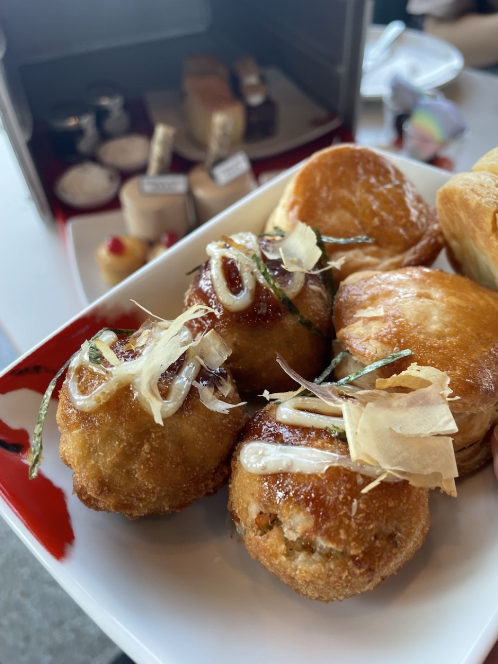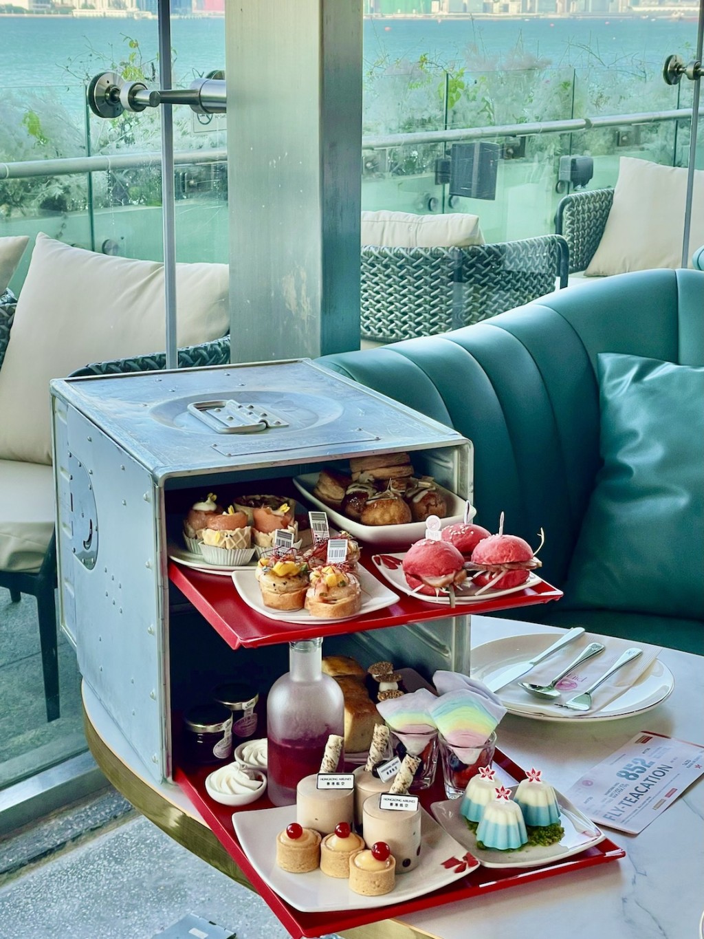 疫情下,大家是否很懷念旅行及乘坐飛機的感覺?之前有航空公司推出Flycation環港遊,而坐落灣仔碼頭的Pier 1929,最近亦聯乘香港航空,推出了全港首個Fly-teacation下午茶。既稱作Fly-teacation下午茶,當然是以旅行作為主題,最特別是這次跳出了傳統下午茶的三層架框架,換上以航機上存放乘客膳食的專用餐箱來盛載美食及以香港航空的餐具及托盤奉客,而十二款精緻鹹甜點,更紛紛加入了香港航空航點城市的特色,如代表東京的富士山柚子芝士蛋糕、代表台北的珍珠奶茶慕斯、象徵曼谷的泰式冬蔭功芒果蝦多士、大阪章魚燒炸飯球及北京煙鴨胸迷你漢堡等等,猶如一趟遊歷東南亞的滋味旅程,下午茶中不但尚有其他鹹甜點供應,還可免費添食,而客人用餐後更可免費獲贈香港航空的商務艙下午茶餐具禮盒,均讓人勾起乘搭飛機出門的美好回憶。