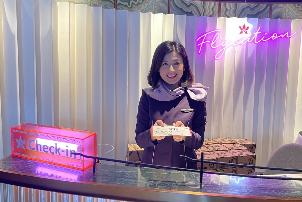 值得一提是,Fly-teacation的滿足感不獨停留在美食上,餐廳也是加入了許多機場的裝飾元素,由進入餐廳時獲送上的登機證,猶如登機通道的走廊,以及許多模仿機場及航班上的打卡布景,定教享用下午茶的食客,憶起往日乘飛機出門時的熟悉畫面。