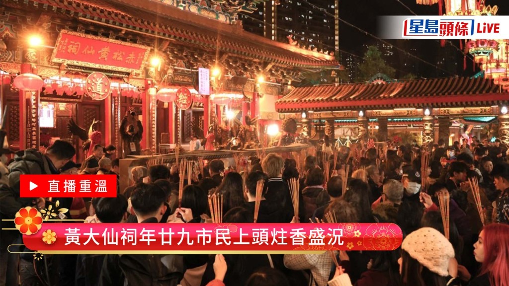 星島頭條LIVE|黃大仙祠年廿九市民上頭炷香盛況