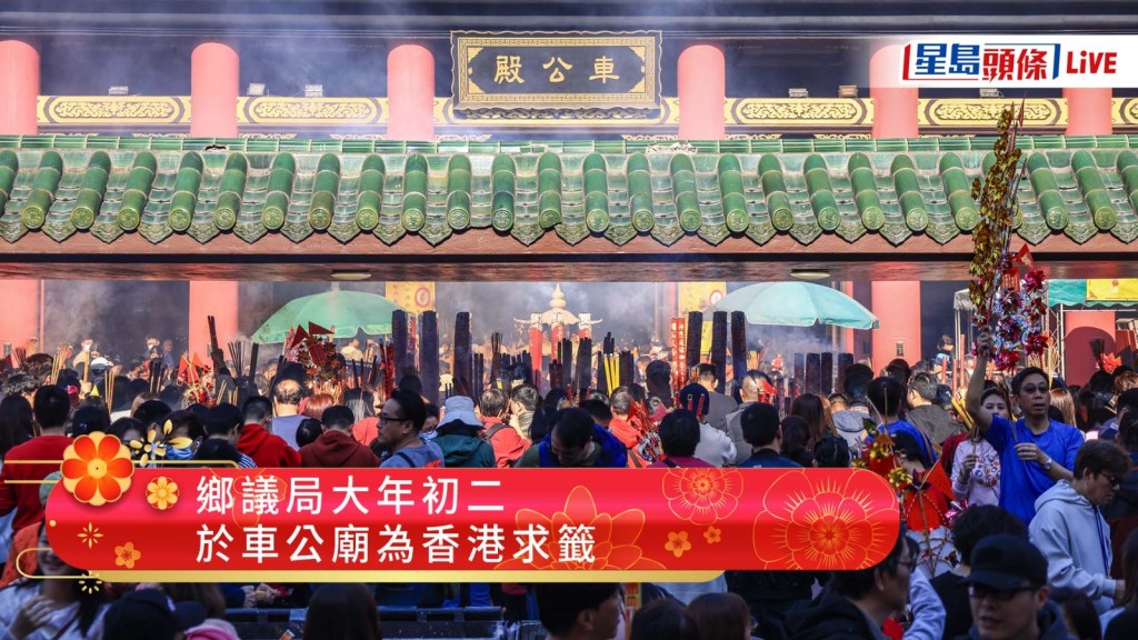 星島頭條LIVE|鄉議局大年初二於車公廟為香港求籤