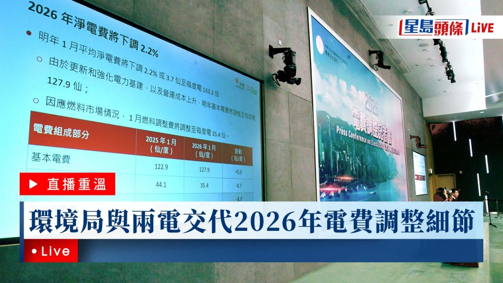 星島頭條LIVE|環境及生態局與電力公司交代2026年電費調整細節