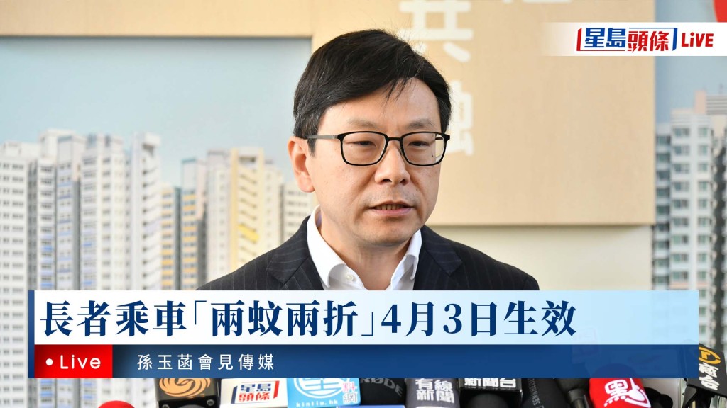 星島頭條LIVE|長者乘車「兩蚊兩折」4月3日生效 孫玉菡會見傳媒