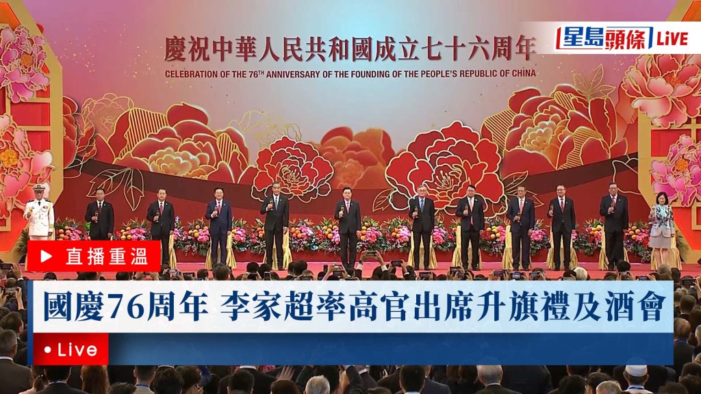 星島頭條LIVE|國慶76周年 李家超率高官出席升旗禮及酒會