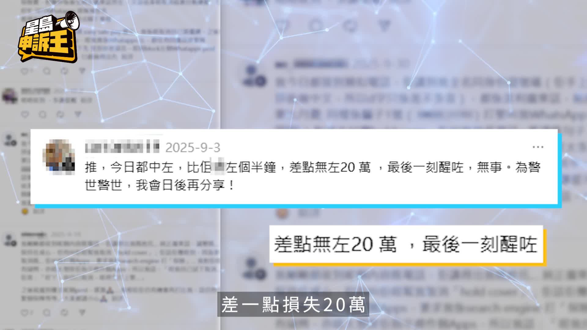 重播 立即播放 星島申訴王|「百萬保障」變「百萬陷阱」 支付寶假客服來電 撳錯掣隨時輸身家 騙案層出不窮,曾被警方點名提及的支付寶「百萬保障」騙案,近月再度死灰復燃。《星島申訴王》早前收到這類訊息,記者與騙徒連日周旋,拆解出騙局三大特點,包括以假亂真、廣東話假客服扮真客服,以及不斷轉換電話號碼,企圖引記者墮進「百萬陷阱」騙局,巿民一旦於釣魚連結或偽冒網頁輸入銀行帳戶及密碼,隨時被騙徒轉走全副身家。 該名致電記者的男騙徒「Jason」,聲稱是支付寶客服,來電是因為記者已登記支付寶「Hold 港聞 1小時前 閱讀更多