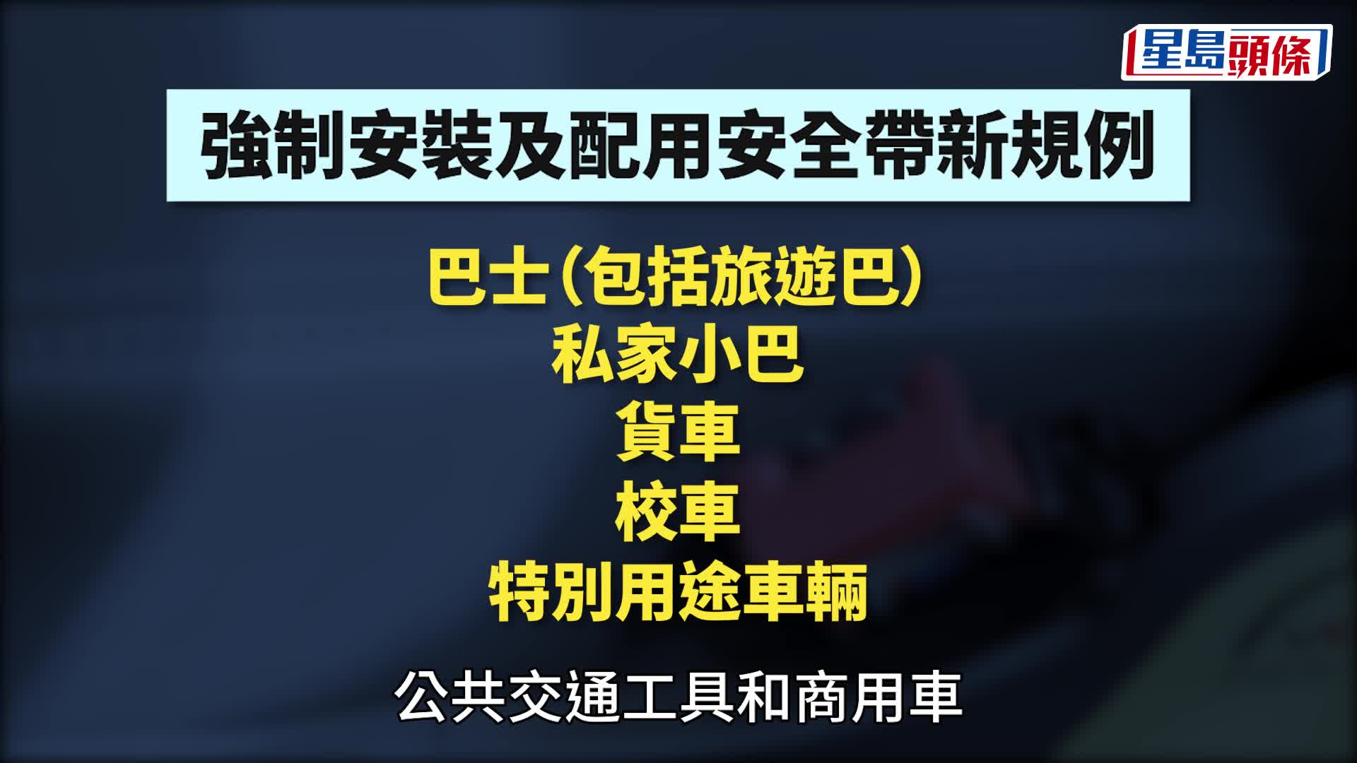 重播 立即播放 巴士/校巴/直通巴等明年1.25起 乘客無扣安全帶罰$5000 司機無提乘客需否負責? 警方日前在東九龍派員放蛇搭小巴,至少發現31名乘客違規沒有配戴安全帶,遂向他們發出傳票。然而,原來不止小巴,根據政府早前修訂的《道路交通(安全裝備)規例》,2026年1月25日起,乘客如乘搭已配備安全帶的專營巴士、公共及私家巴士等,均須佩戴安全帶,違者可處罰款5,000元及監禁3個月。新修訂亦涵蓋校巴、旅遊巴及跨境直通巴等。 安全帶︱乘客不扣後果自負 司機毋須負責 同時,所有明年1月25日後新登記 港聞 9小時前 閱讀更多