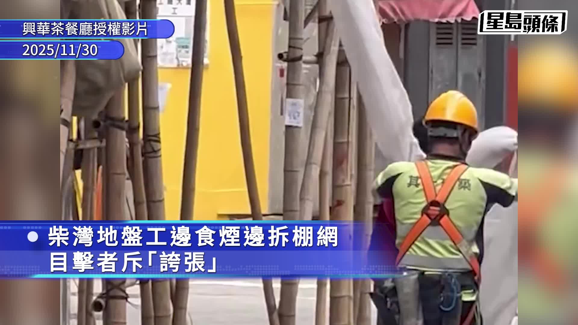 重播 立即播放 大埔宏福苑五級火︱柴灣地盤工邊食煙邊拆棚網 目擊者斥「誇張」:風頭火勢都唔識避一避 大埔宏福苑五級火災造成至少146人死亡,網傳慘劇元兇是「地盤工人食煙」,而宏福苑居民亦曾投訴苑内工人吸煙問題嚴重。然而,似乎仍有人「見過鬼唔怕黑」,有網民今日(30日)在社交平台分享短片,指正當全部人關注宏福苑大火時,有地盤工人在地面位置拆除棚網時仍然「擔住支煙」,「驚都未驚過」。 目擊者:風頭火勢都唔識避一避 目睹事發經過的「興華」負責人向《星島頭條》表示,今午約兩時半,柴灣長匯工業大廈外正進行 港聞 2小時前 閱讀更多
