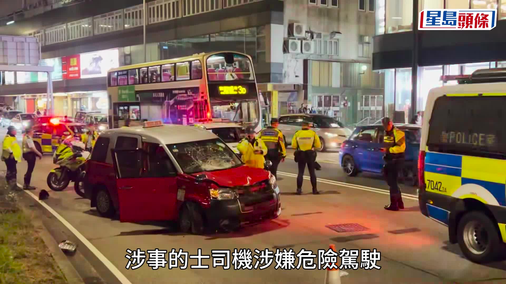 重播 立即播放 九龍灣觀塘道奪命車禍 46歲的士司機涉危駕被捕 九龍灣觀塘道奪命交通意外,昨(13日)晚約9時12分,一名46歲男子駕駛一輛的士沿觀塘道往觀塘方向行駛,當駛至近牛頭角道時,據報撞倒該名正在過路的80歲男子。老翁頭部及四肢嚴重受傷,昏迷被送往伊利沙伯醫院治理,昨晚10時37分被證實死亡。 該名司機涉嫌危險駕駛引致他人死亡被捕,他現正被扣留調查。東九龍總區交通部特別調查隊正跟進調查案件,任何人如目睹意外發生或有資料提供,請致電36610259與調查 港聞 7小時前 閱讀更多