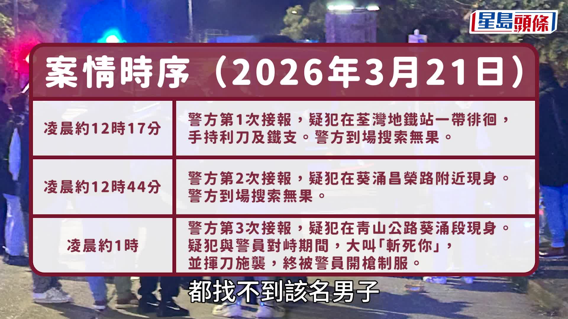 重播 立即播放 葵涌男持刀街頭徘徊 遭警開5槍制服 胸口大腿中彈昏迷送院搶救 葵涌今日(21日)凌晨發生警員開槍事件。一名43歲男子持刀在青山公路徘徊,並一度舉刀指向到場戒備的警員。警員在多次警告無效下開槍,持刀漢中彈倒地昏迷,由救護車送院搶救。 男子一度舉刀相向 多名警員拔槍 今日凌晨2時許,警方接獲市民報案,指發現一名男子手持利刀,在葵涌青山公路近業成街位置持刀徘徊,並徑自往附近油站方向行走,神情怪異且具攻擊性。大批警員接報後迅速趕抵現場調查。 直到凌晨2時許,警員在距 港聞 12小時前 閱讀更多