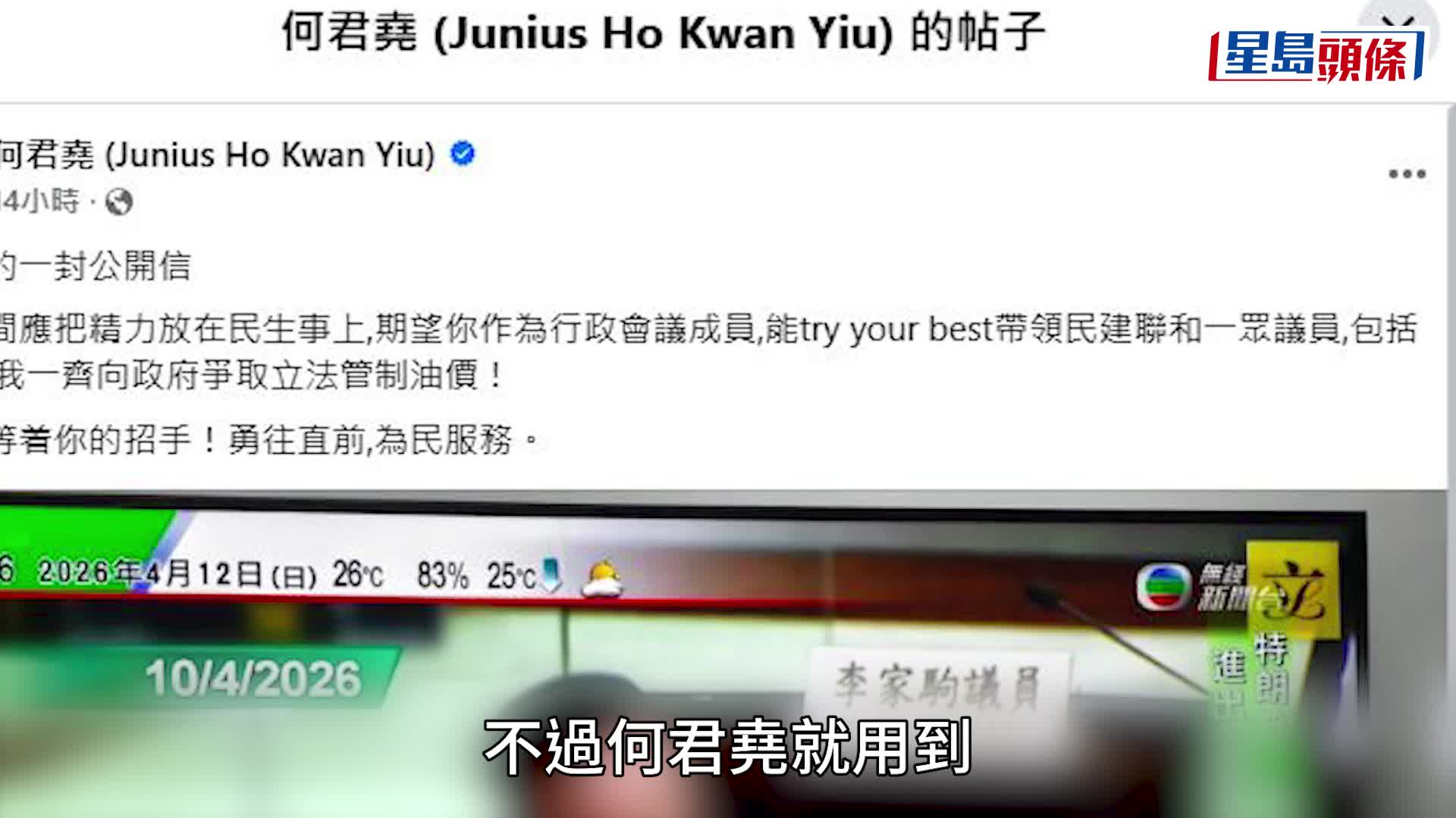 重播 立即播放 遭陳克勤批「反對派技倆」搬弄是非 何君堯反擊:try your best管制油價 陳克勤一圖回應 立法會議員何君堯於上周財委會會議上,由於被指離題及超時發言,遭主持會議的財委會副主席陳克勤制止,事後於社交平台指控陳克勤「護短」。陳克勤昨日撰千字文反擊,指何君堯離題在先,如此言論令人聯想起昔日反對派搬弄是非的技倆。 何君堯指「try your best」 等陳克勤「招手」 何君堯昨晚在社交平台再反擊,指「你我之間應把精力放在民生事上,期望你作為行政會議成員,能try your best帶領民建聯 港聞 10小時前 閱讀更多