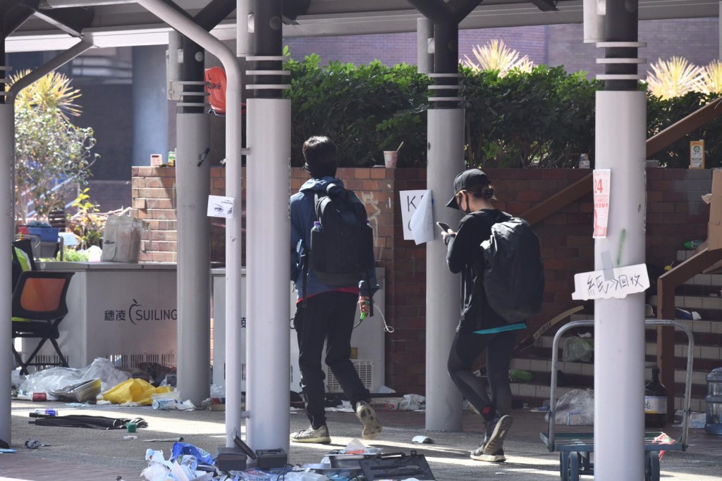 卫炳江则指校内饭堂卫生情况恶劣促请对方清理后,应示威者要求,连同杨立伟和一众理大高层到饭堂厨房协助打扫,清理厨余。