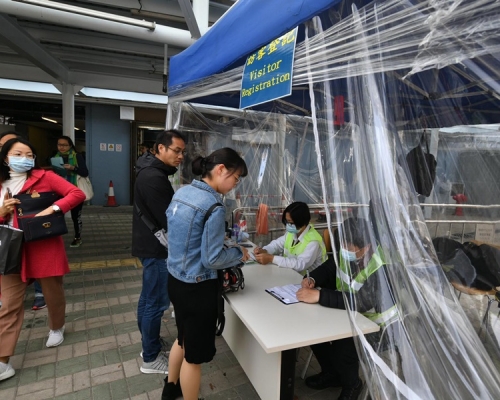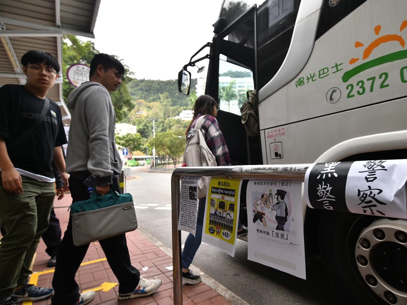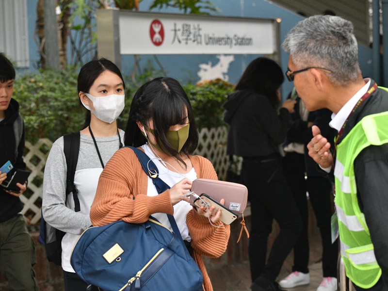 记者现场所见,各出入口均有保安驻守,港铁大学站对出入口尤甚,逾10名保安「一字」站开,要求学生、教职员出示中大证件,访客则须登记身分证,虽然人手足够,但仍一度排起人龙,亦有学生指着身上印有系会名称的外套,并无出示证件获放行。