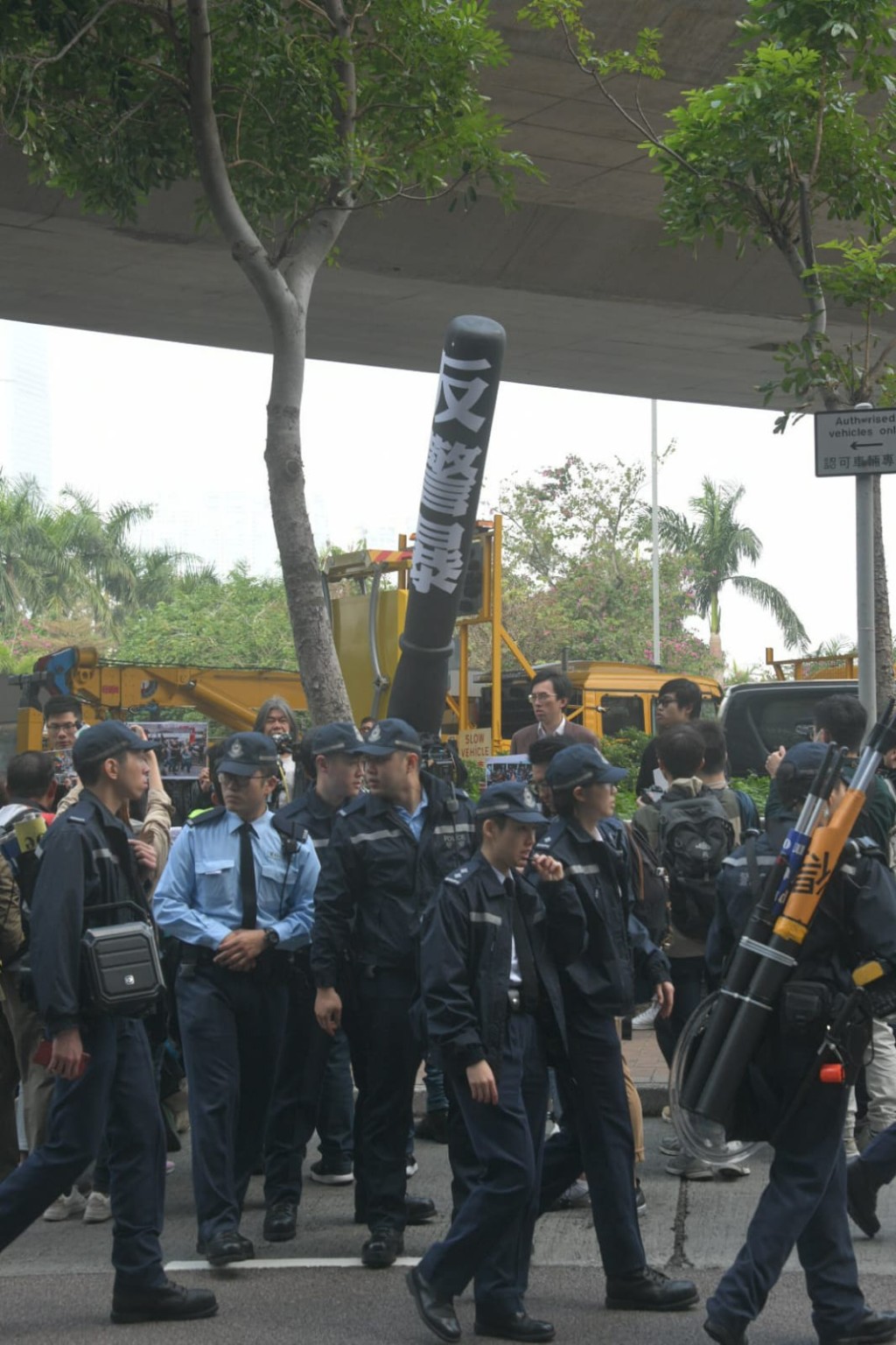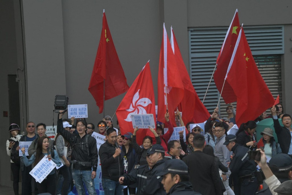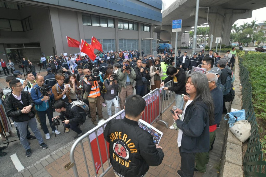 邓炳强出席中西区区议会会议 两批示威者场外隔马路对骂