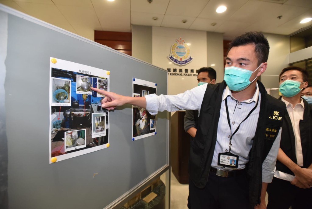被捕人士包括一家三口,被捕主脑「厨师」的妻子及儿子,以及这一家的朋友。现场检获一些化学的书籍,相信自学制作毒品,而疑犯并没有化学学历。警方指,香港制造冰毒很少见,因为需要一定化学知识及原材料,包括受管制麻黄碱。