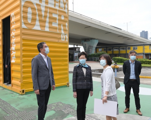 林郑月娥其后参观位于观塘绕道下的「反转天桥底行动」,三个由非牟利机构营办的场地提供多元化的设施,包括艺廊、户外活动空间、多用途室、开放式舞台、都市园圃、餐厅、小食亭和短期主题商店,多年来共举办了近1 000项活动,深受市民欢迎。然而,受新冠肺炎疫情影响,近月多项活动取消,营运机构陷入困境。政府早前已运用第二轮「防疫抗疫基金」提供财政支援,协助机构度过难关,既保住相关雇员的就业,亦为市民留住一片可享用的小天地。