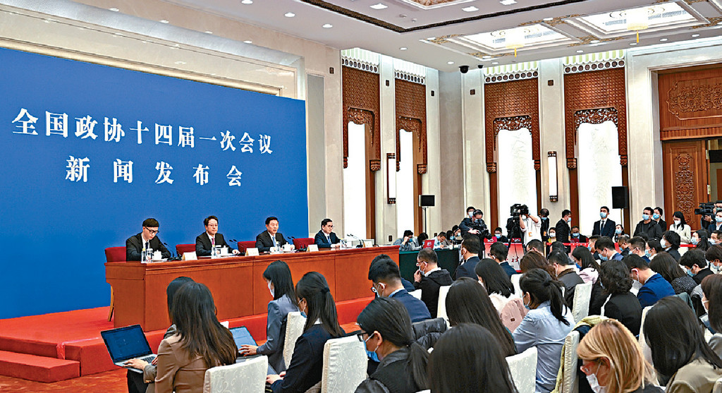 全国政协十四届一次会议今午3时将在北京人民大会堂开幕。昨日举行首场新闻发布会,是全国两会时隔3年,首次恢复面对面记者会。大会新闻发言人郭卫民表示,随著疫情过去,社会生产生活恢复正常,未来首要任务是要「稳增长」,做好经济工作。
