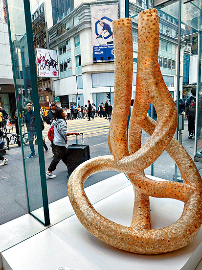 生于上环一个中药世家,苏咏宝自小与中药为伴,不同药材的质感与形状,给她创作灵感。在恒基地产旗舰商业发展项目The Henderson举办的《聚光:传承到未来》展览中,苏咏宝新作《达摩克利斯之剑(流动)》(Sword of Damocles(flow)),蕴含中西双重意义。