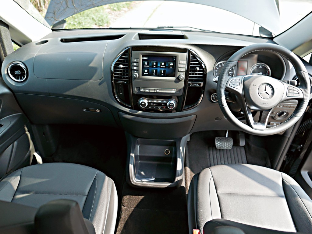 在设备上,eVito同样有LED头灯、双电趟门、真皮軚盘、Audio 30 触控屏幕、人造皮座椅连电暖前座、左右恒温冷气及后排独立冷气等。安全装备方面,原车包括Distronic智能巡航系统、危急自动煞车、泊车辅助系统连后泊镜头、侧风辅助系统等。