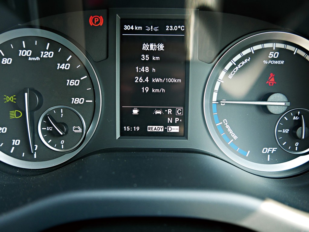 eVito的续航力为378km,试车当日充满电后出发,用了4小时40分钟拍摄,全程开冷气及未有熄车,到充电站前行驶了97km,一半路程为高速公路,消耗了26%电量,跟厂方宣称的续航力非常接近。根据厂方人员提供的资料,每度电(中电家用$1.29/1度电)最高可行4.2km计算,即是$0.3/km!估计是它的动力回收系统帮助不少,因为试车时大部分时间选用了可延长续航力的Eco+驾驶模式。同时于落大斜路时,透过軚盘后方的拨片,可改变5级能量回收幅度,只要将它转为「D- -」模式,就会有相当于engine brake的拖拉减速效果,不单可减低部份柴油版用家称载满货下斜时掣动不够强的问题,当摩打有剩余转动力或煞车时,更会将动能转化为电能,为高压电池充电。当然实际的耗电表现,还需视乎情况及不同行车设定,不过就算耗电多一倍,都比柴油版实际约$1.3/km油费悭得更多(以每公升柴油价$19.9减$6.5优惠计算)。